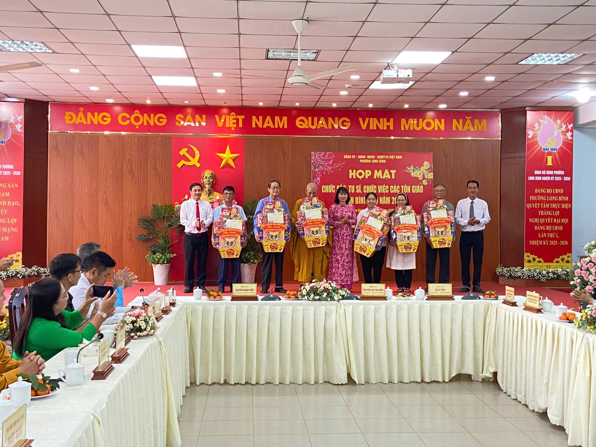 Nhân dịp Tết cổ truyền, lãnh đạo phường Long Bình đã trao tặng những phần quà ý nghĩa đến các tổ chức tôn giáo và các vị chức sắc, tu sĩ, thể hiện sự tri ân và lời chúc mừng năm mới an lành, hạnh phúc.