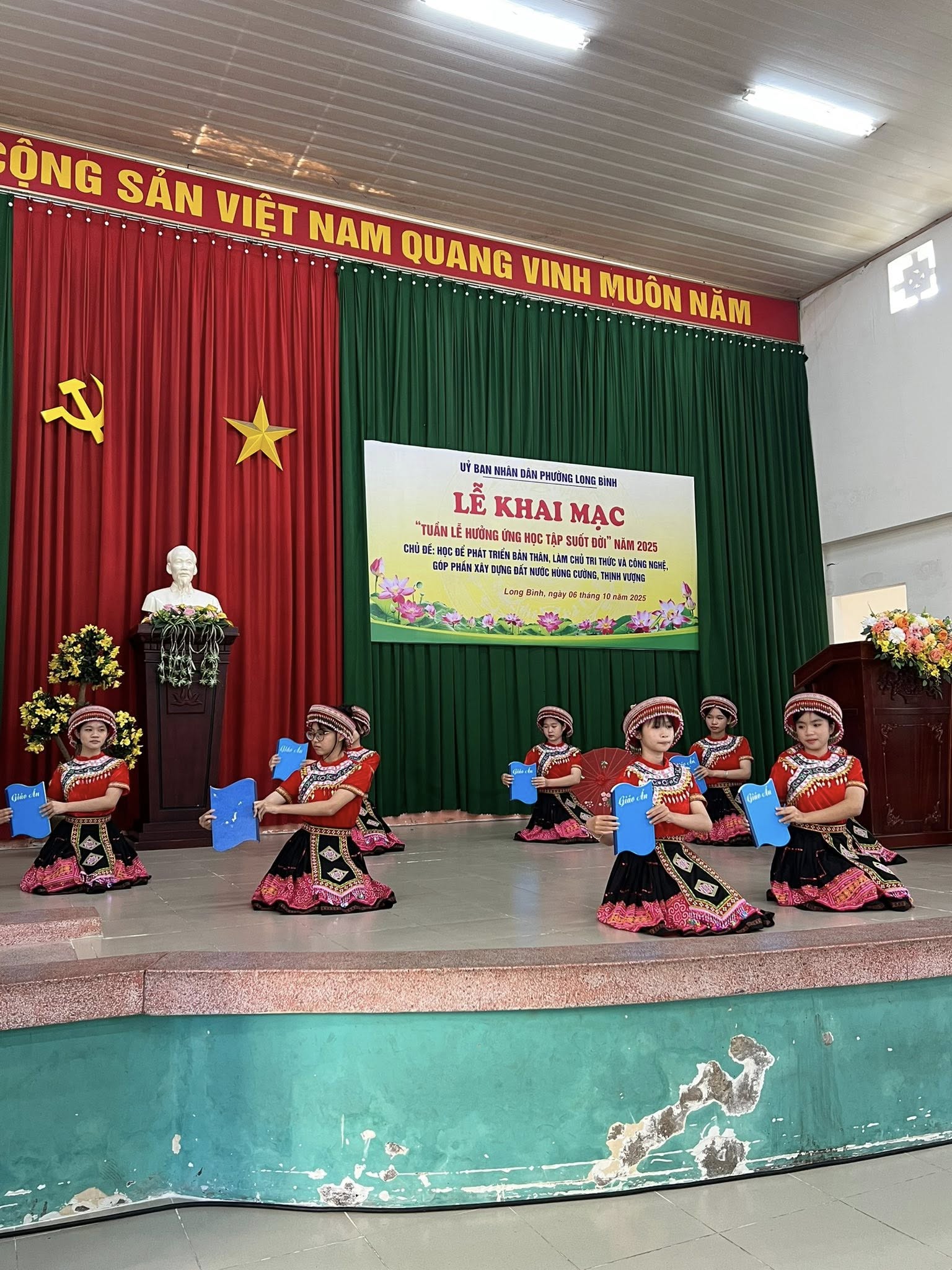 Sáng ngày 06/10/2025, tại Trường Tiểu học Phan Bội Châu, Ủy ban nhân dân phường Long Bình long trọng tổ chức Lễ khai mạc Tuần lễ hưởng ứng học tập suốt đời năm 2025 với chủ đề: “Học để phát triển bản thân, làm chủ tri thức và công nghệ, góp phần xây dựng đất nước hùng cường, thịnh vượng”.
