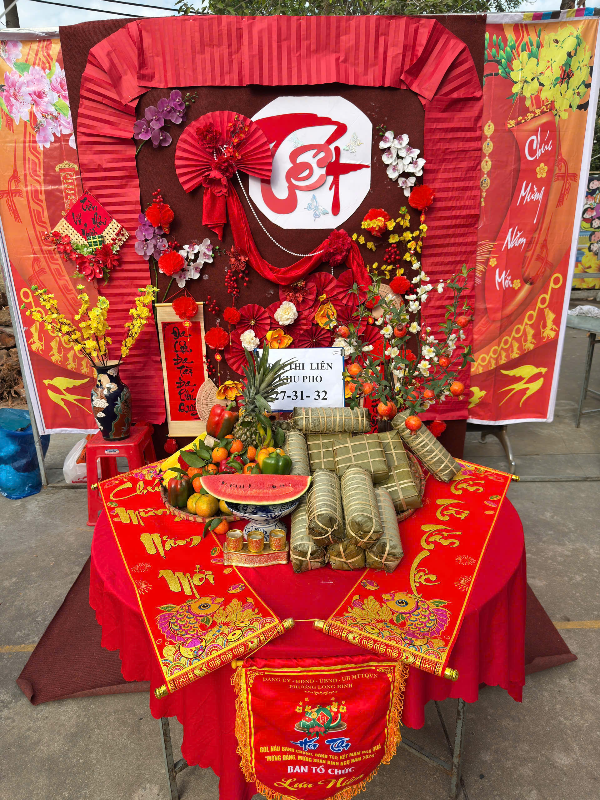 Hội thi gói, nấu bánh chưng, bánh tét; kết mâm ngũ quả và trang trí bàn cúng gia tiên được tổ chức tại sân UBND phường Long Bình, với sự tham gia của 14 đội thi đến từ các cơ quan, đơn vị, trường học, lực lượng vũ trang và các khu phố. Các đội thi đã thể hiện sự khéo léo, sáng tạo trong từng công đoạn gói bánh, nấu bánh, trang trí mâm ngũ quả và không gian thờ cúng gia tiên, mang đậm bản sắc văn hóa Tết Việt.