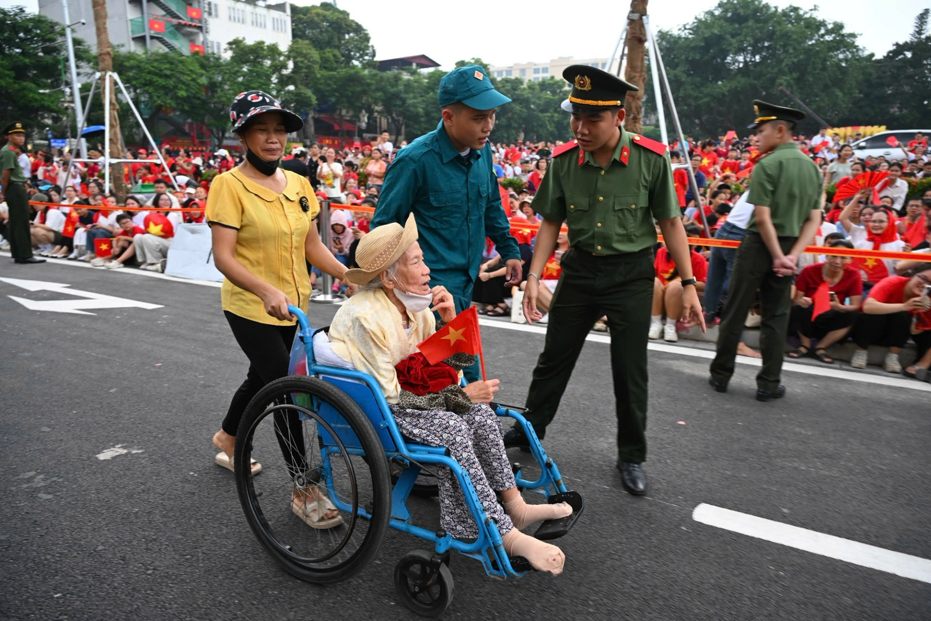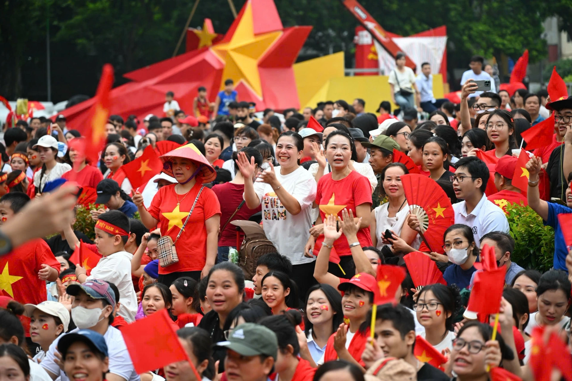 Dù buổi tổng hợp luyện đầu tiên của lễ diễu binh, diễu hành kỷ niệm 80 năm Quốc khánh 2-9 sẽ bắt đầu vào lúc 20 giờ, nhưng ngay từ khi trời còn sáng, hàng vạn người dân Thủ đô cũng như từ nhiều tỉnh thành trong cả nước đã đổ về Quảng trường Ba Đình và các con phố chung quanh để chờ đón các chiến sĩ.