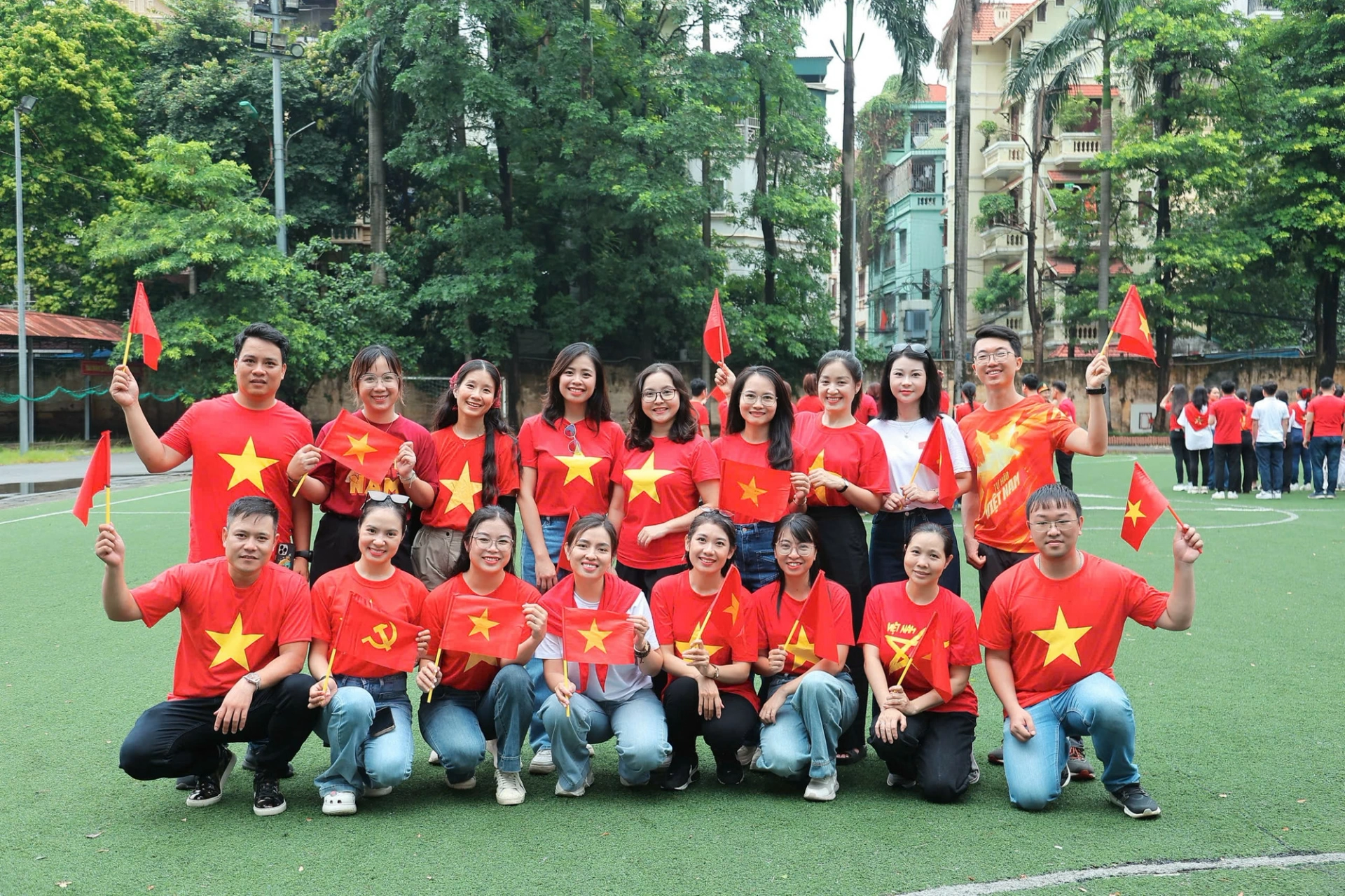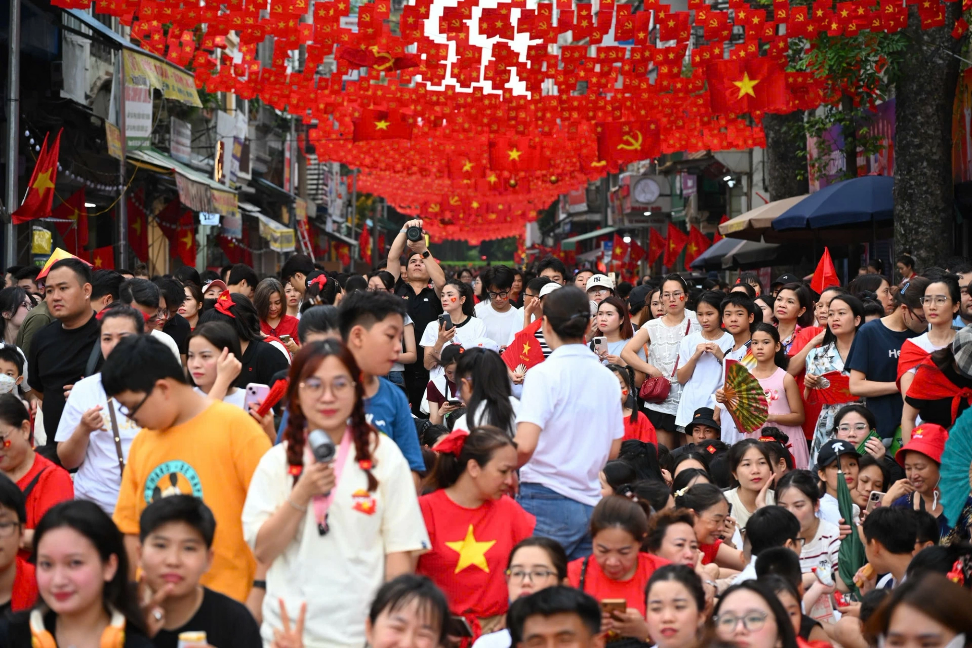 | Sắc đỏ ngập tràn trên các con phố ở Hà Nội. |