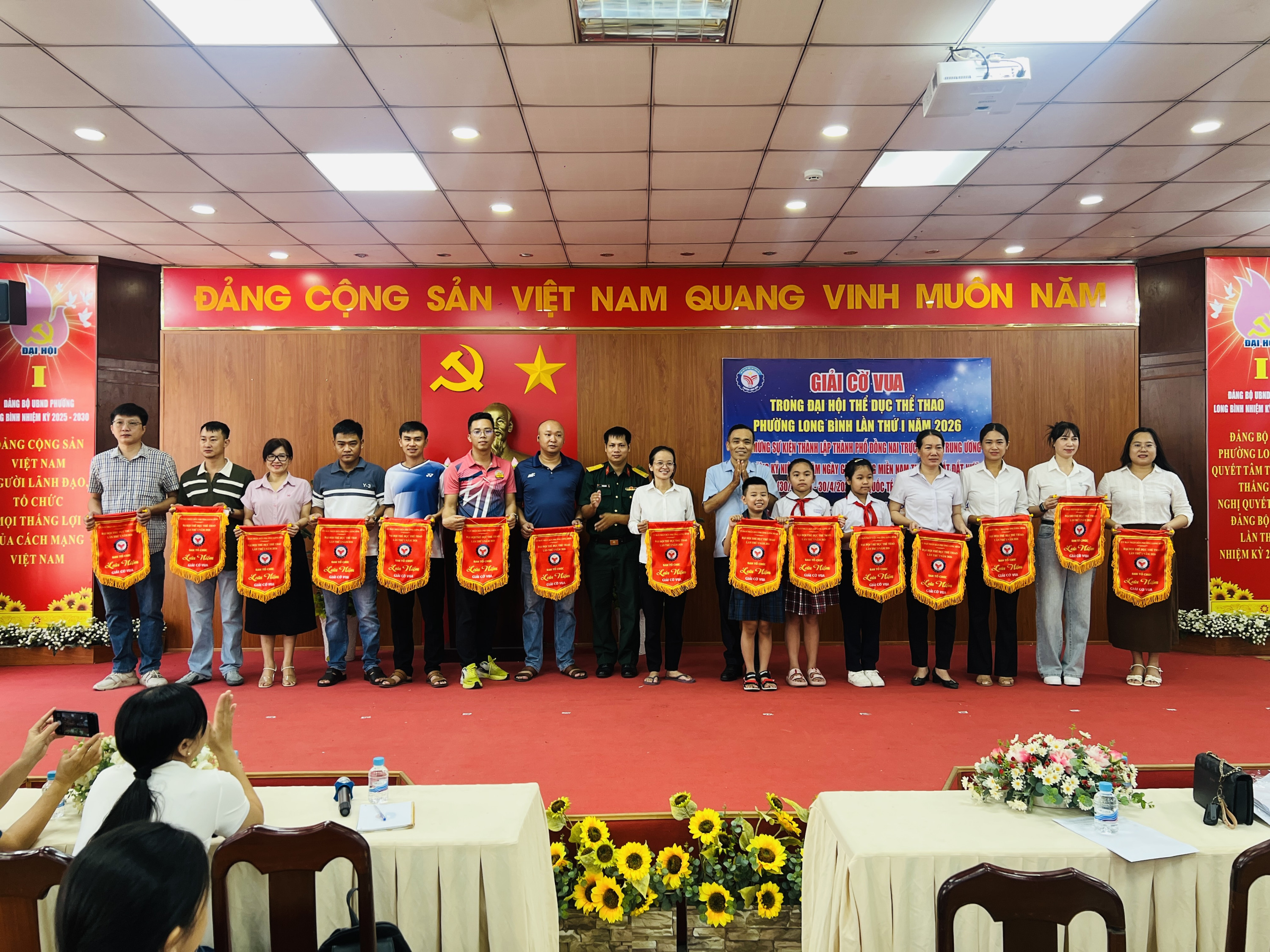 Tham dự buổi lễ có các đồng chí đại diện các ban ngành, đoàn thể, Ban Giám hiệu các trường học, Ban Điều hành các Khu phố cùng đông đảo các trọng tài, phụ huynh và các vận động viên.