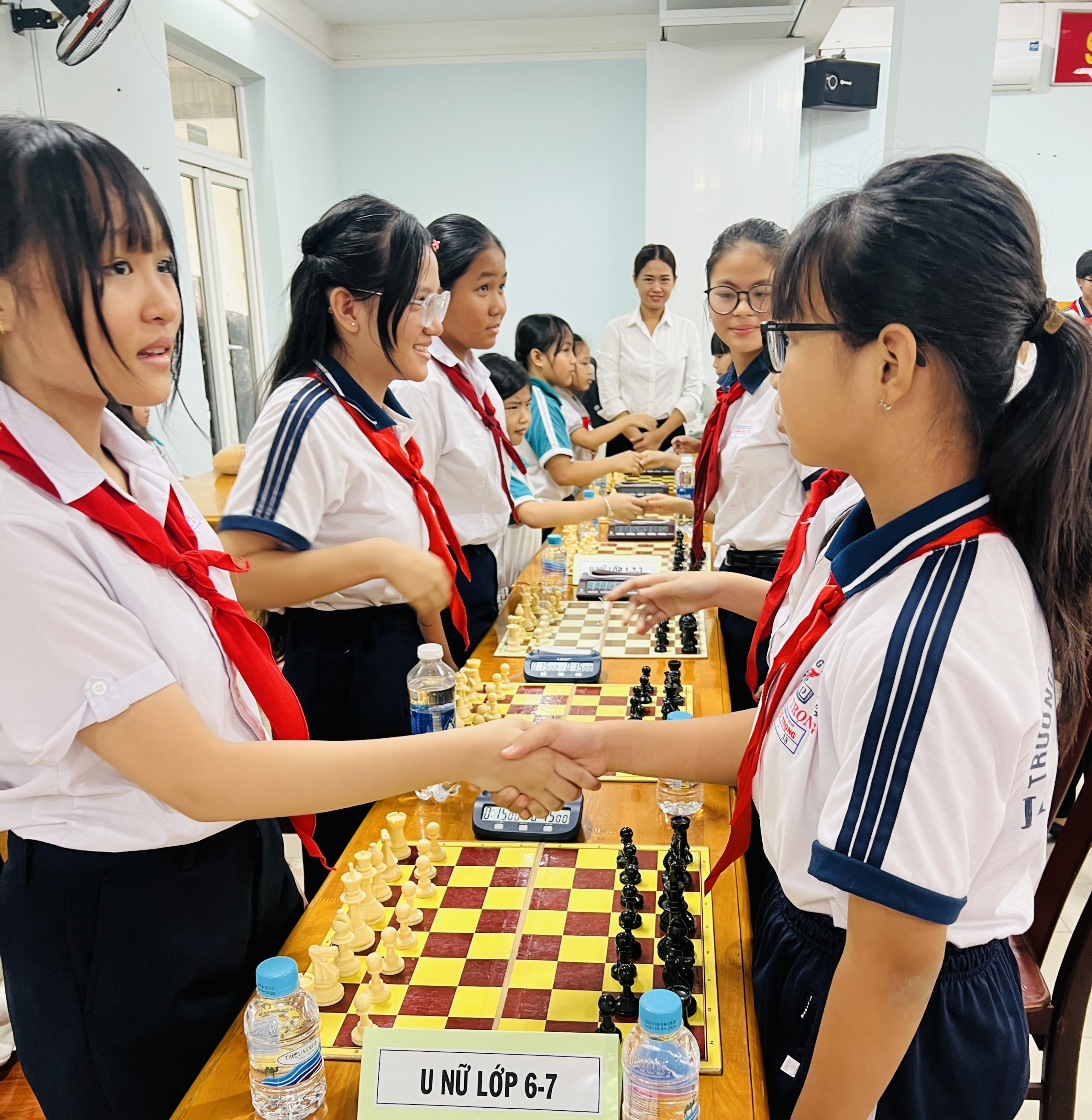 Các Vận động viên bắt tay nhau trước khi bắt đầu thi đấu Ảnh: Quốc Vương