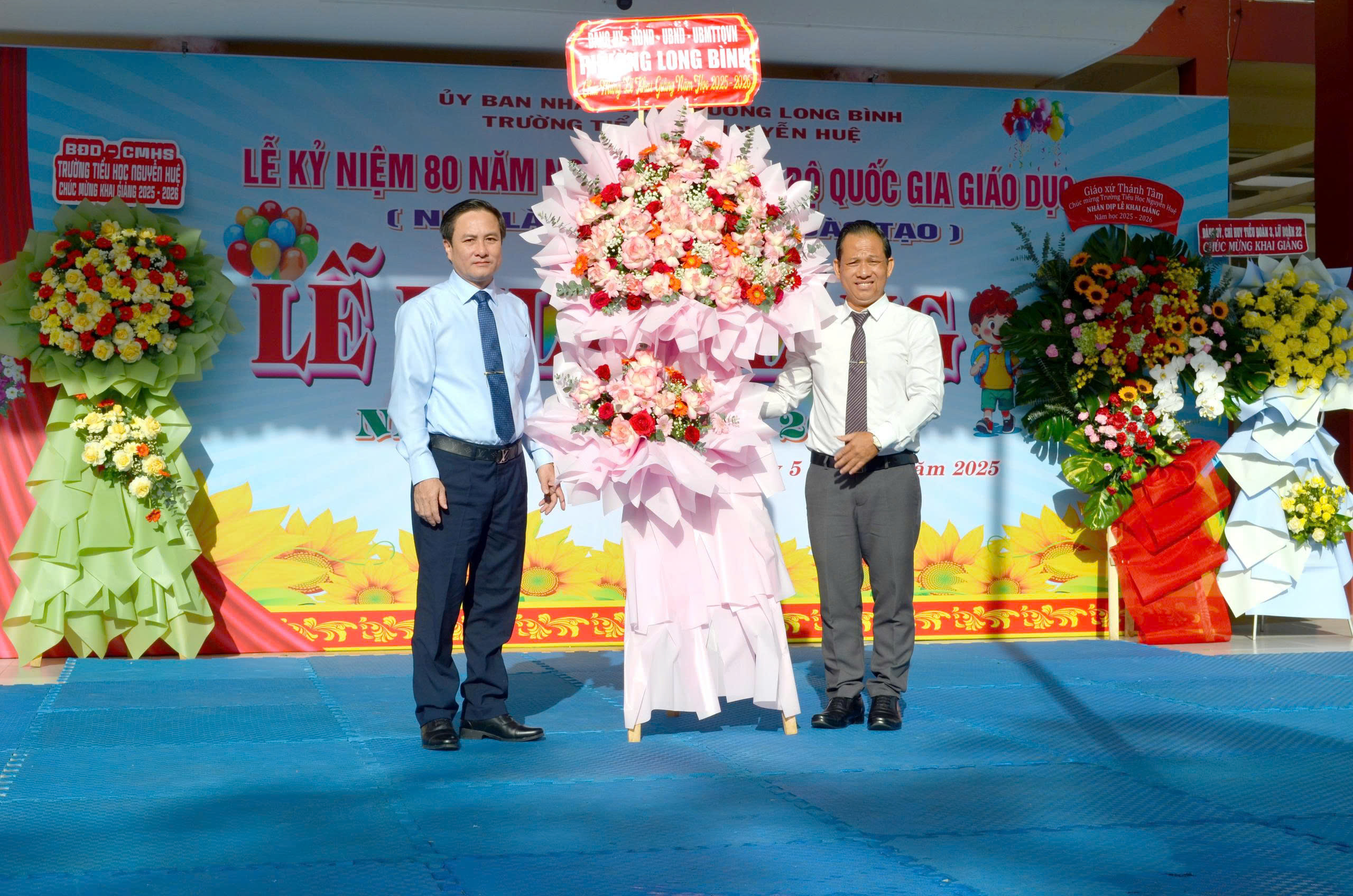 Đặc biệt, lãnh đạo địa phương cũng đã đến dự và phát biểu, biểu dương những thành tích mà ngành giáo dục phường Long Bình đã đạt được trong năm học vừa qua. Cùng với đó là những lời động viên, khích lệ các em học sinh cố gắng học tập, rèn luyện đạo đức để trở thành những công dân có ích cho xã hội. Những bó hoa tươi thắm được trao tặng như lời tri ân sâu sắc đến những người lái đò thầm lặng – những thầy cô giáo đã và đang cống hiến hết mình cho sự nghiệp trồng người.